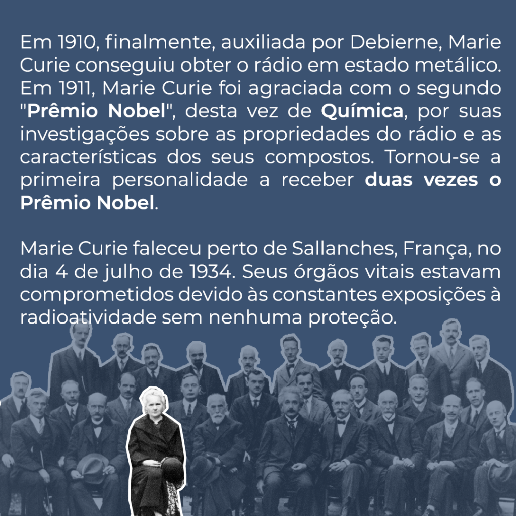 Hoje vamos apresentar um breve resumo sobre a história da incrÃvel cientista, Marie Curie, que descobriu e isolou os elementos quÃmicos, o polônio e o rádio, junto com Pierre Curie. Foi a primeira mulher a ganhar o Prêmio Nobel de FÃsica e a primeira mulher a lecionar na Sorbonne.